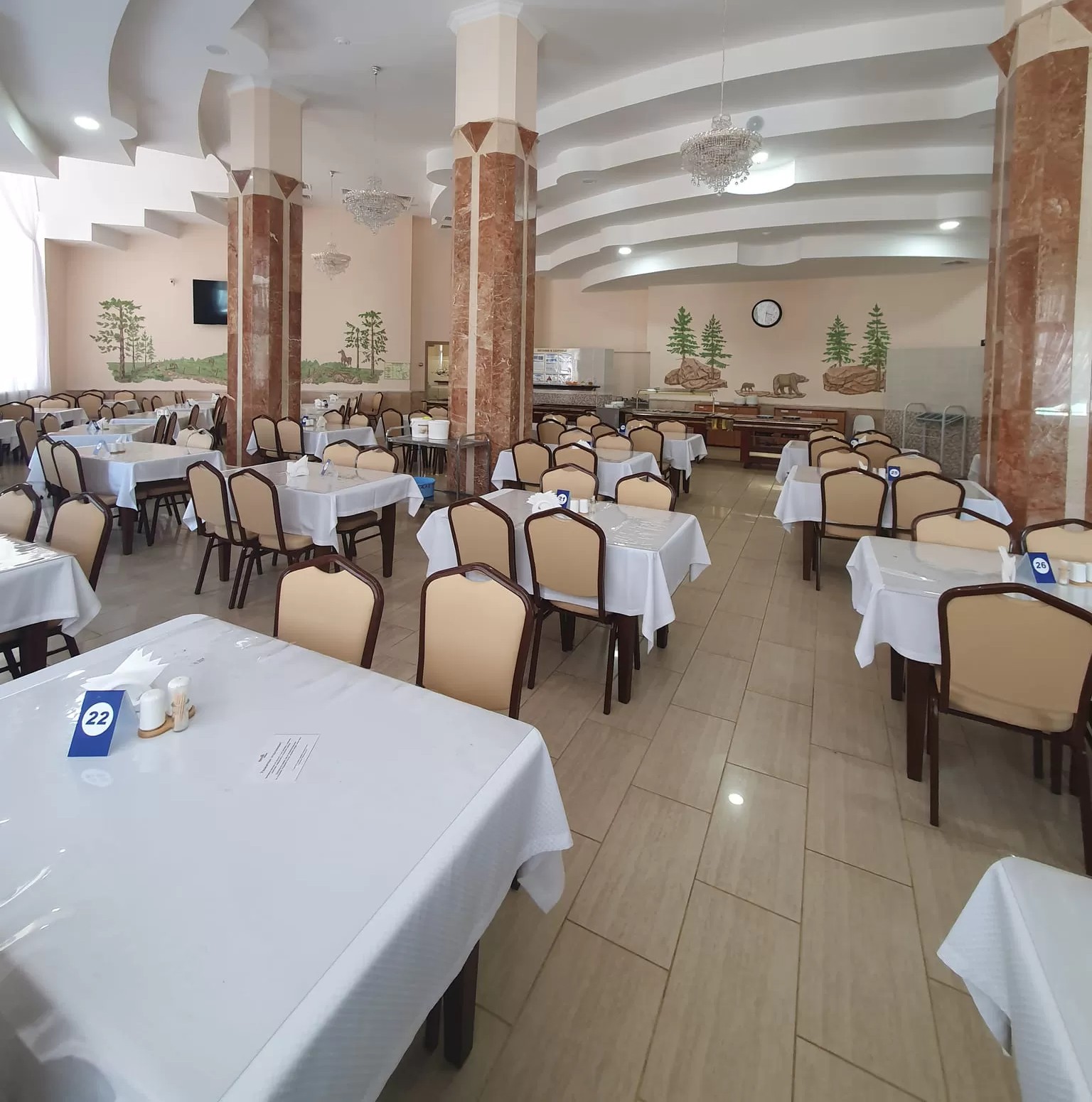 Питание в санатории организовано с элементами шведского стола в ресторане и залах питания корпусов №6 и №7. По пятницам проходят дни национальной кухни. Также на территории действует кафе-бар «Зилим», кафе в круглогодичной «Юрте» и фитобары - в зданиях водо- и грязелечебниц.