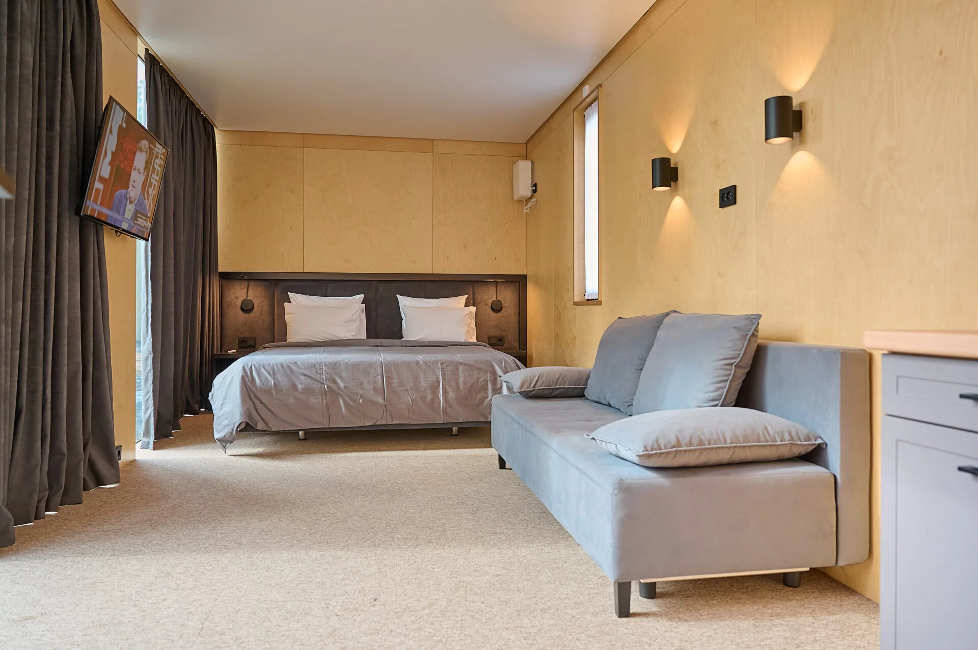 - Люкс. 2-комнатный студия (корпус Шале). Площадь: 50. Осн. мест: 3. Доп. мест: 0.
