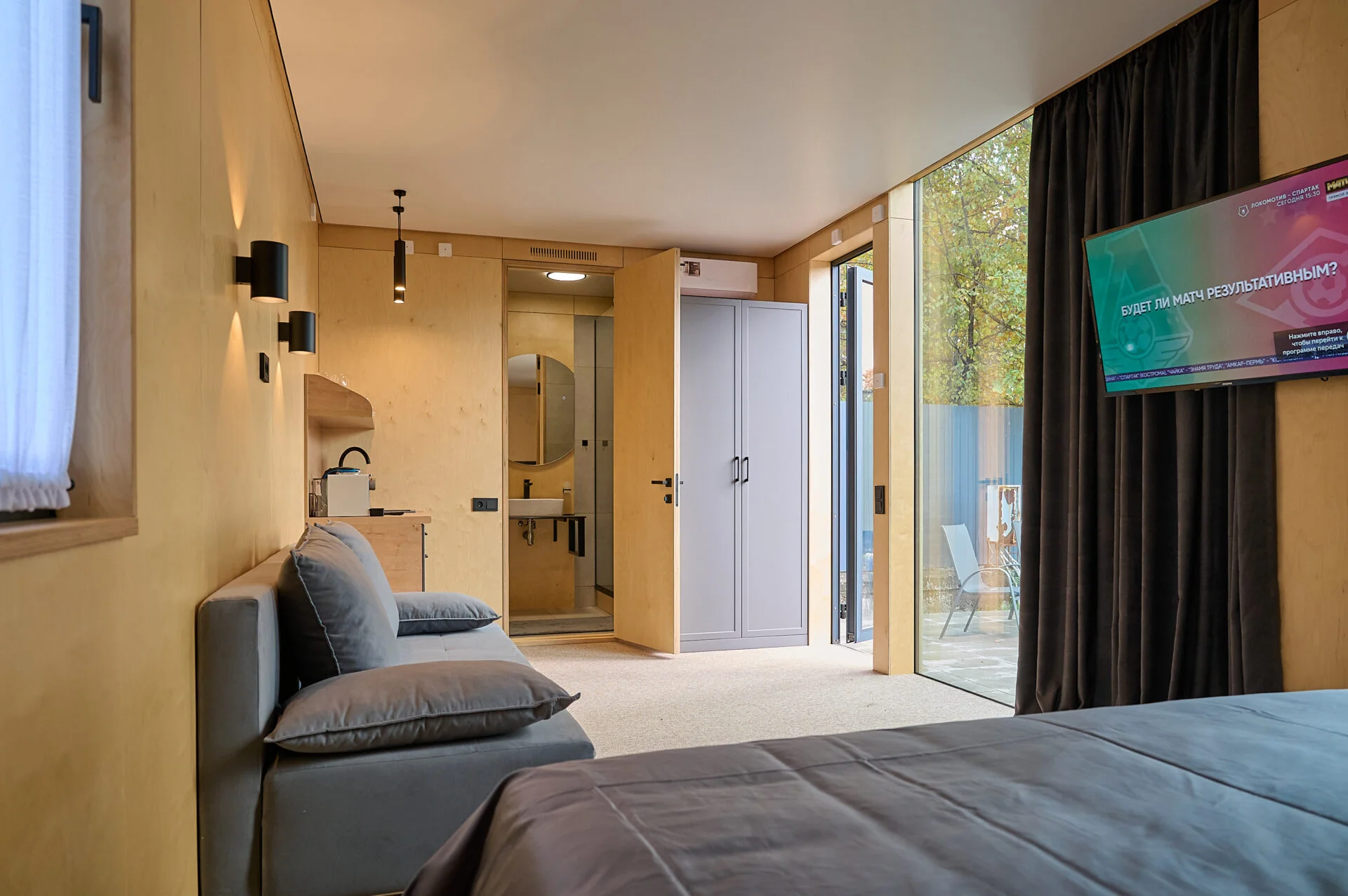 - Вилла. 2-местный Street Estet Глемпинг-парк «Дикий берег» . Площадь: 24. Осн. мест: 2. Доп. мест: 2.