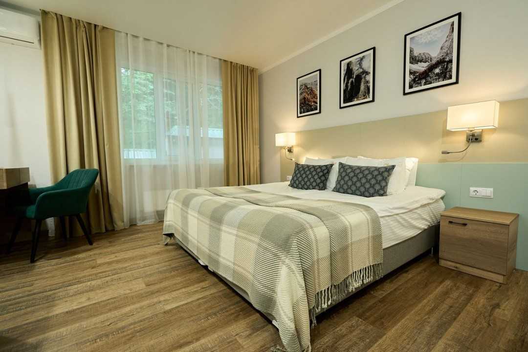 - 1 категория. стандартный семейный 2-комнатный. Площадь: 33. Осн. мест: 2. Доп. мест: 2. Всего таких номеров: 3 (в главном корпусе и в коттедже «Любовь»).