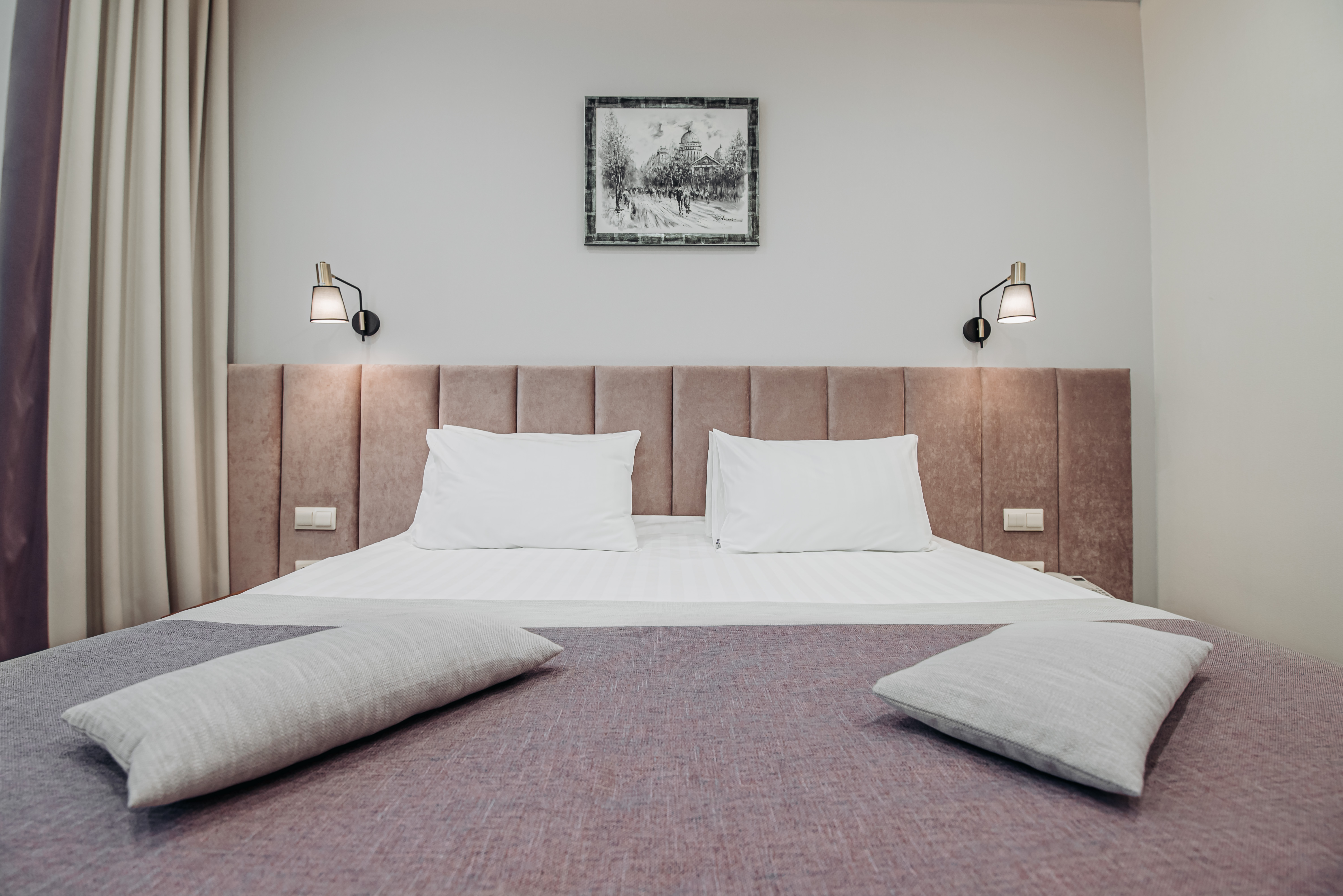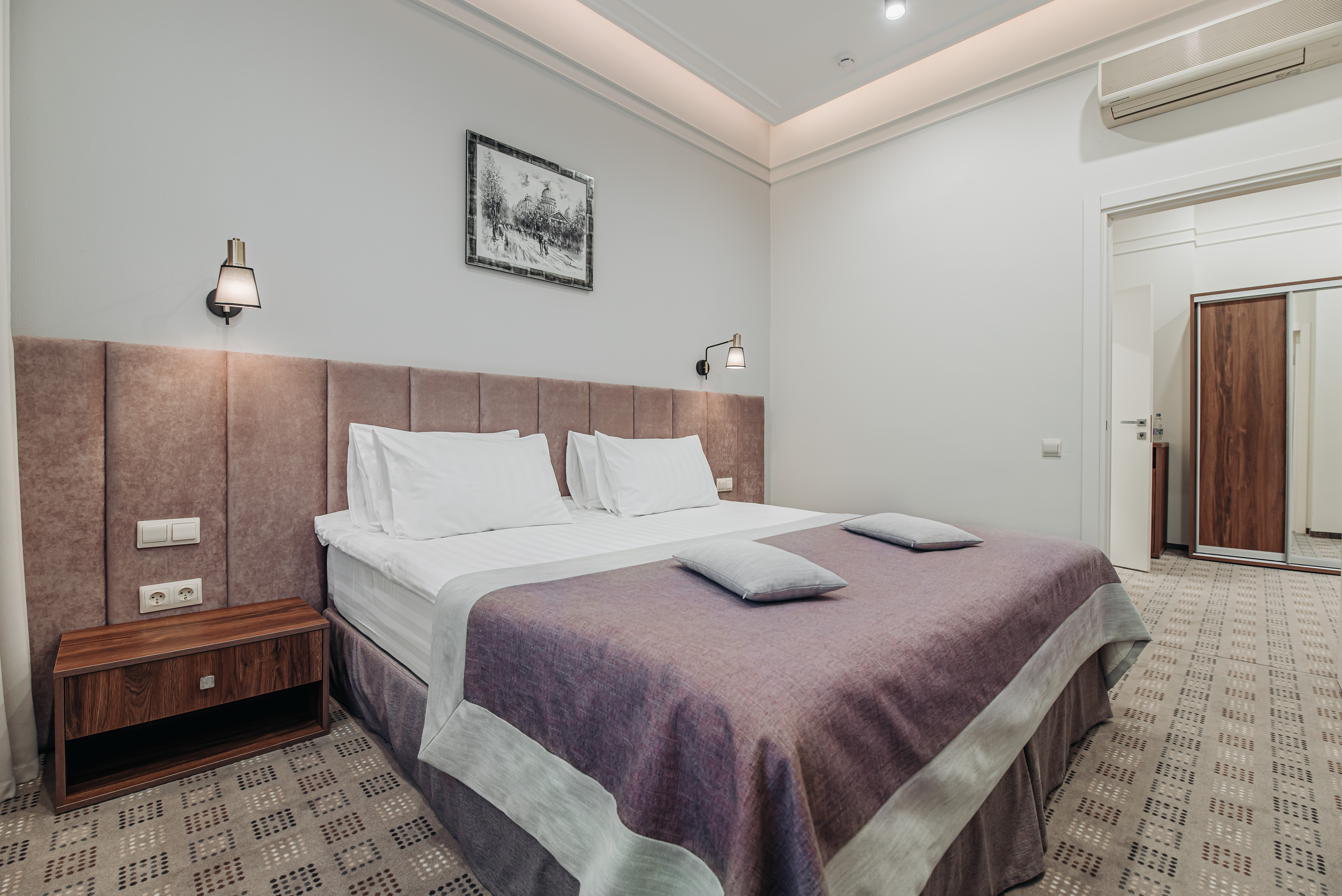 Четырехэтажное здание отеля находится в тихом закрытом дворике, это позволяет гостям отдохнуть от шума столицы и насладиться тишиной и спокойствием. Жилой фонд, рассчитанный на 82 гостей, предлагает отдыхающим уютные номера разных категорий комфорта. В комнатах стильный интерьер, выдержанный как в современном, так и классическим стиле. Все номера оснащены кондиционером, плазменным телевизором, мини-холодильником и собственной ванной комнатой.
