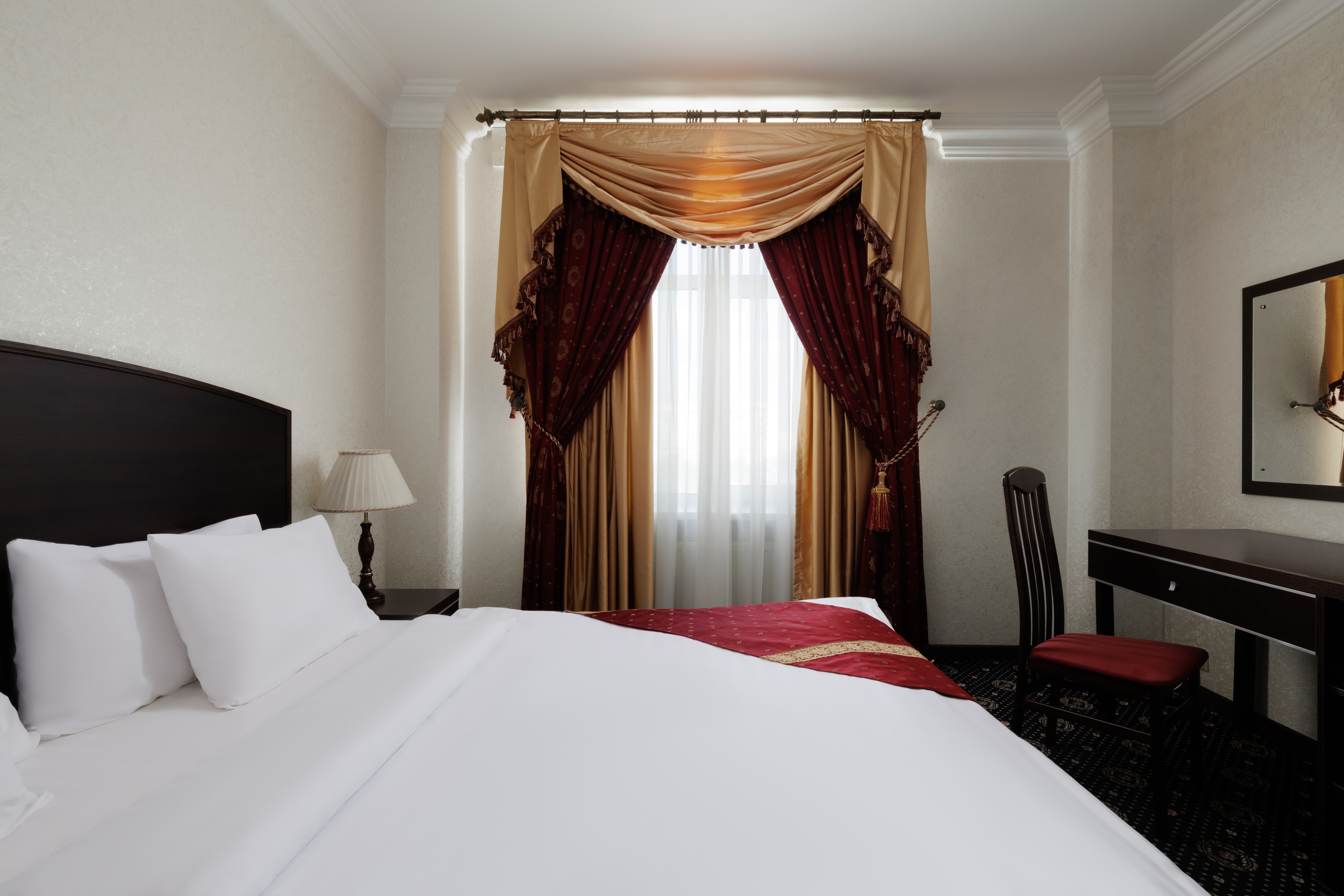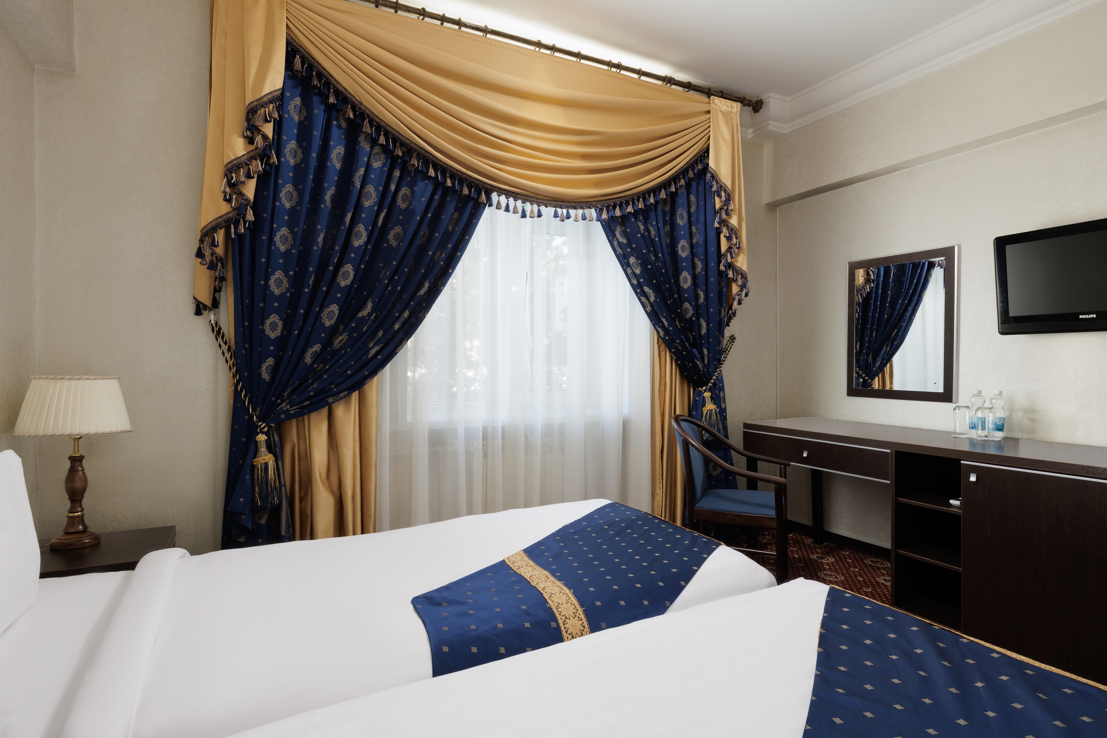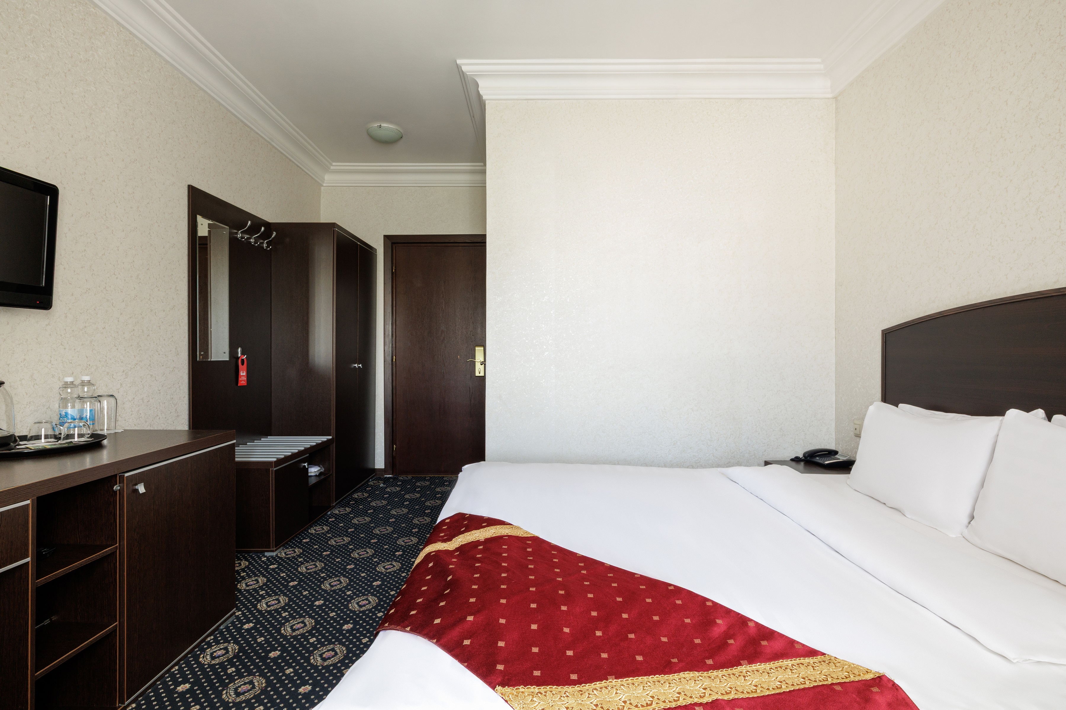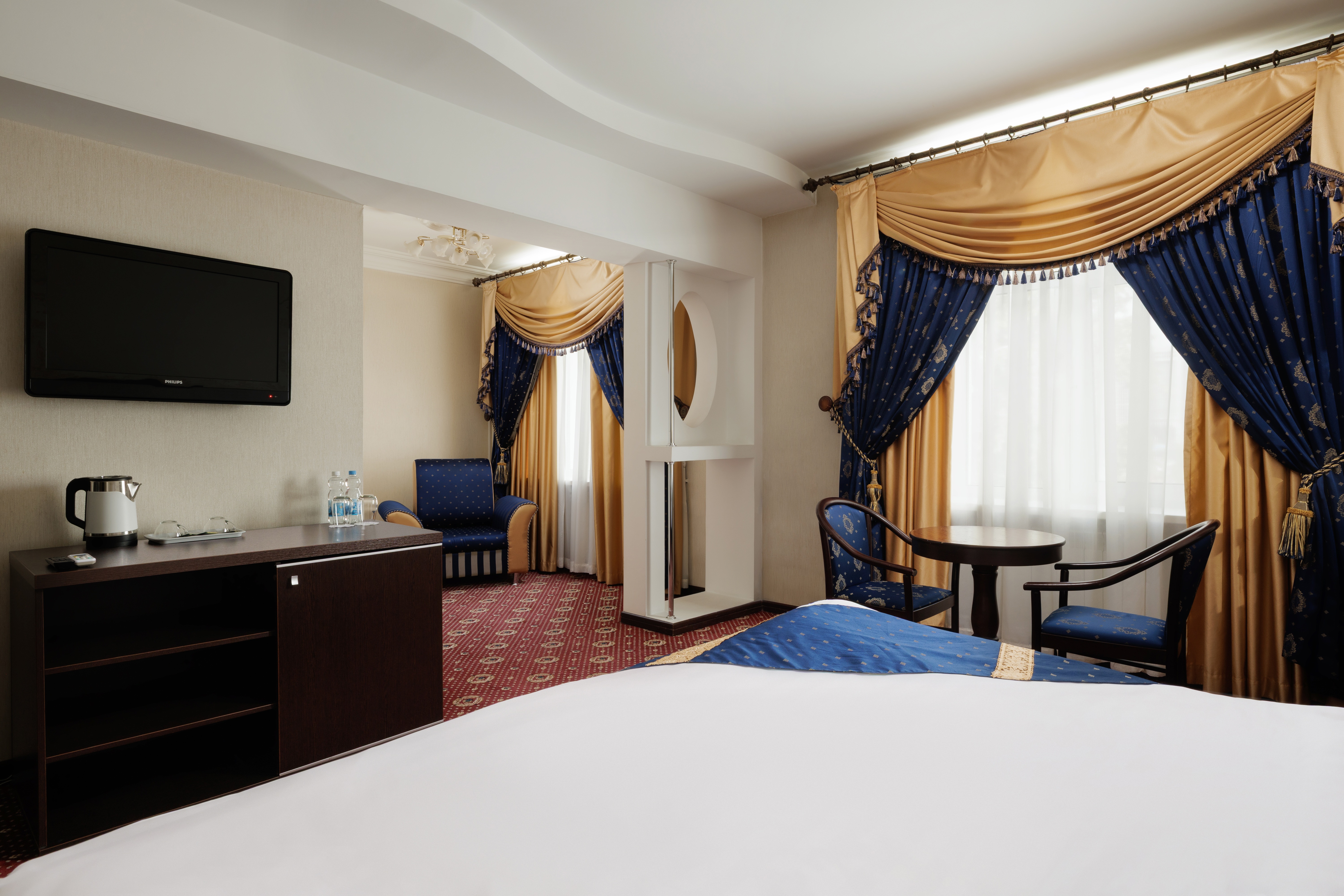 7-ми этажный отель, оснащенный лифтом, включает в себя 2-х местные номера категории Студио, Делюкс, Люкс, Бизнес и Стандарт. Выдержанные в классическом стиле номера, укомплектованные необходимой бытовой техникой – телевизором, кондиционером, холодильником и оснащены ванной комнатой с косметическими принадлежностями для гостей.
