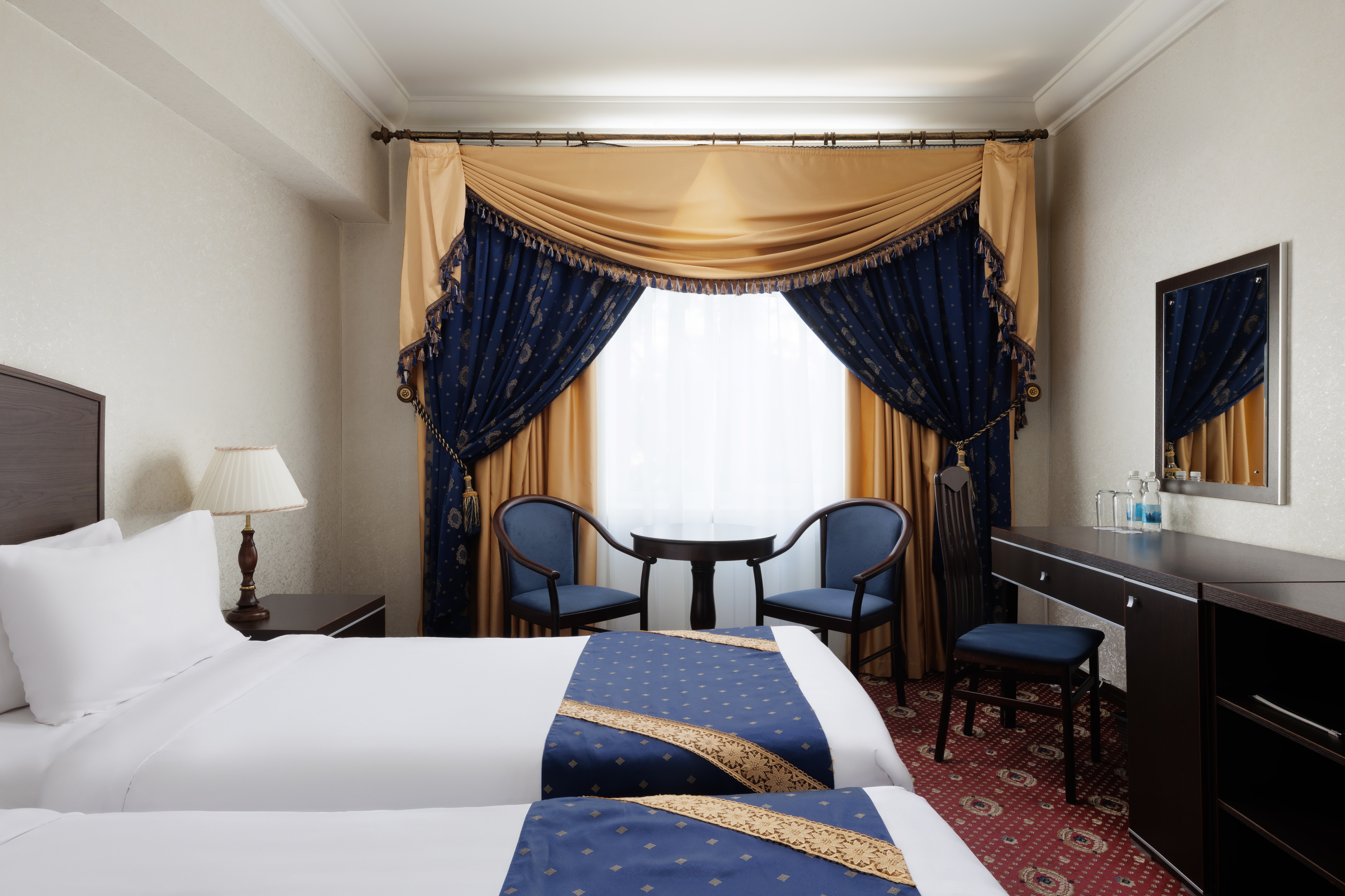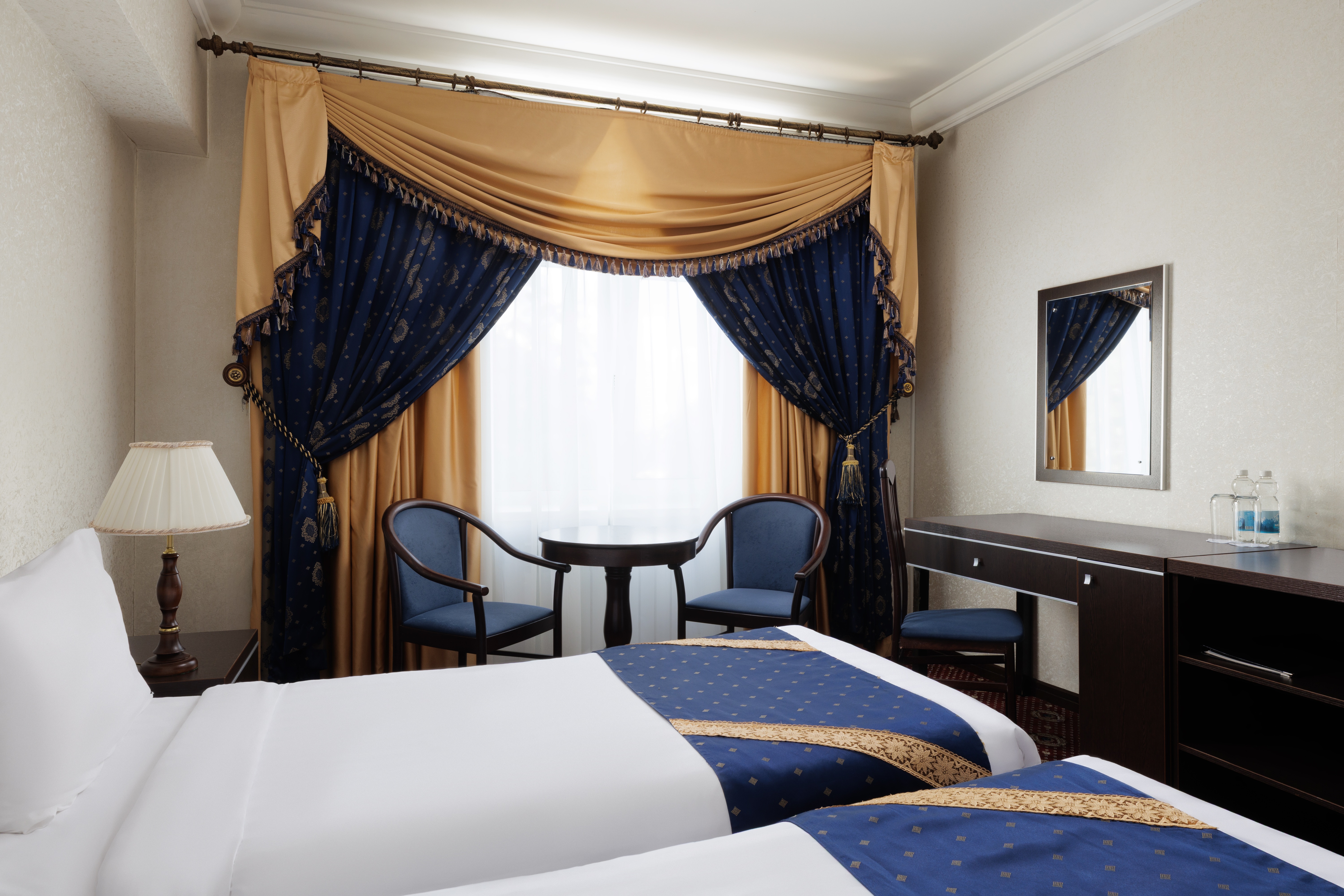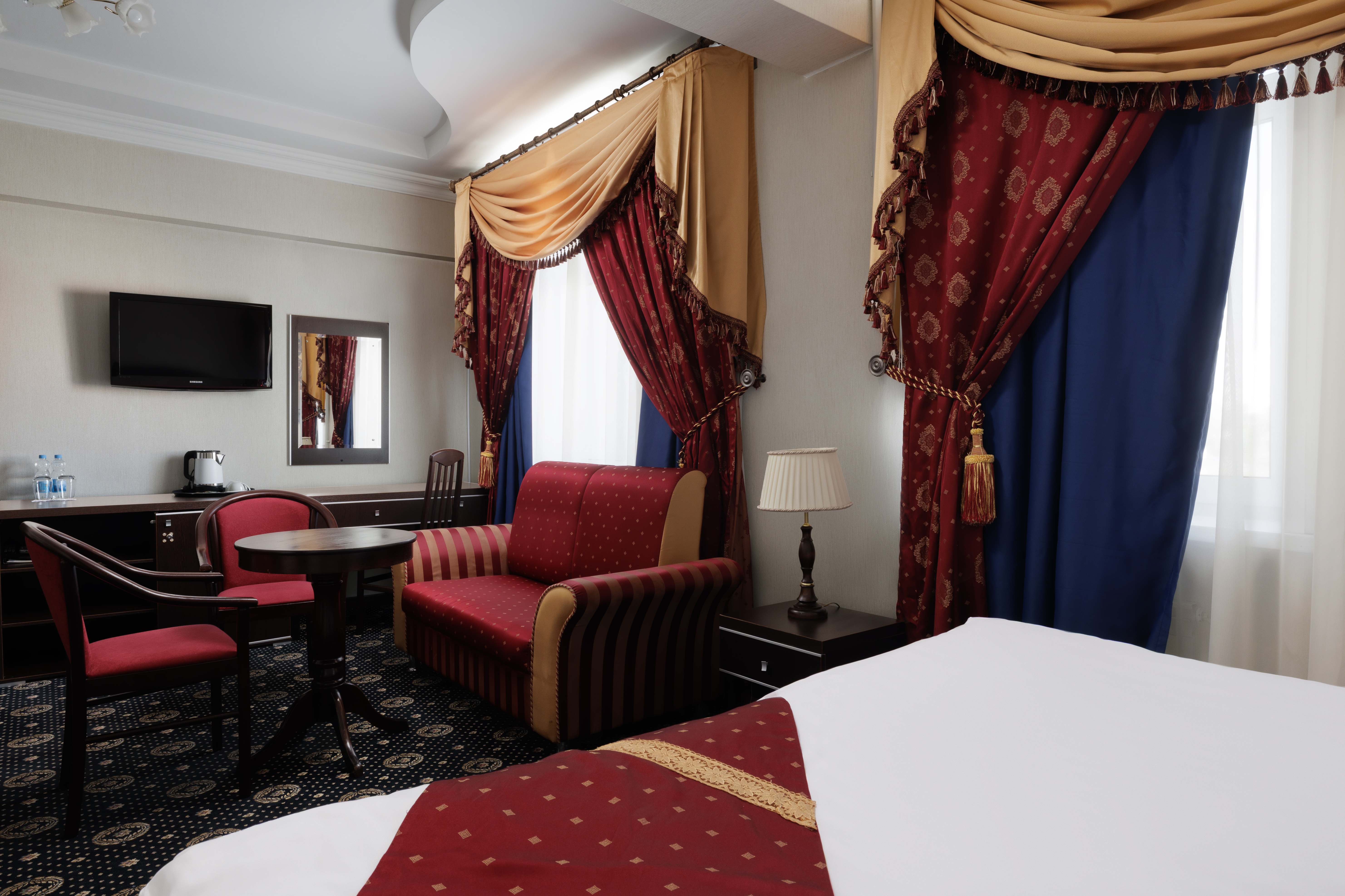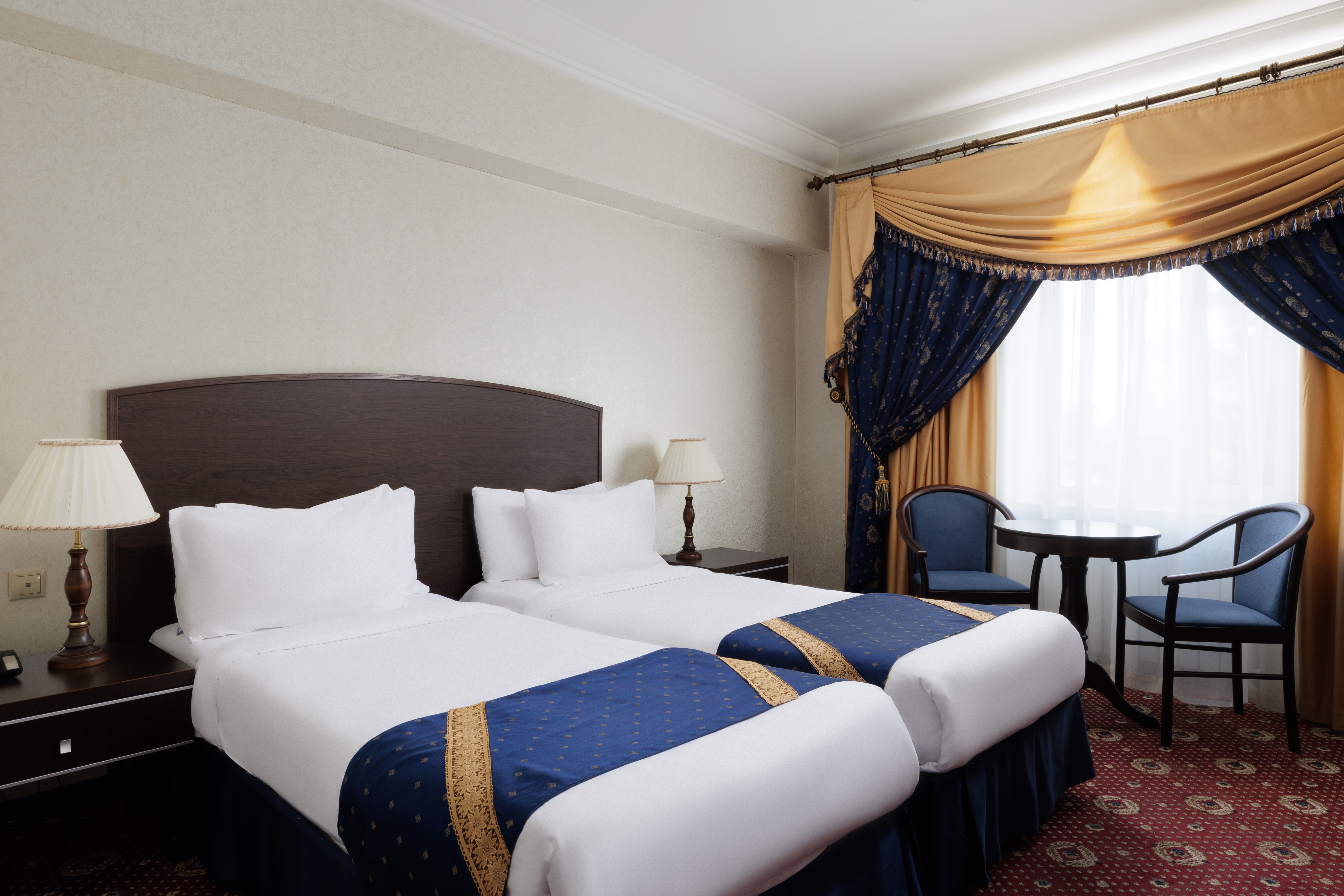 7-ми этажный отель, оснащенный лифтом, включает в себя 2-х местные номера категории Студио, Делюкс, Люкс, Бизнес и Стандарт. Выдержанные в классическом стиле номера, укомплектованные необходимой бытовой техникой – телевизором, кондиционером, холодильником и оснащены ванной комнатой с косметическими принадлежностями для гостей.