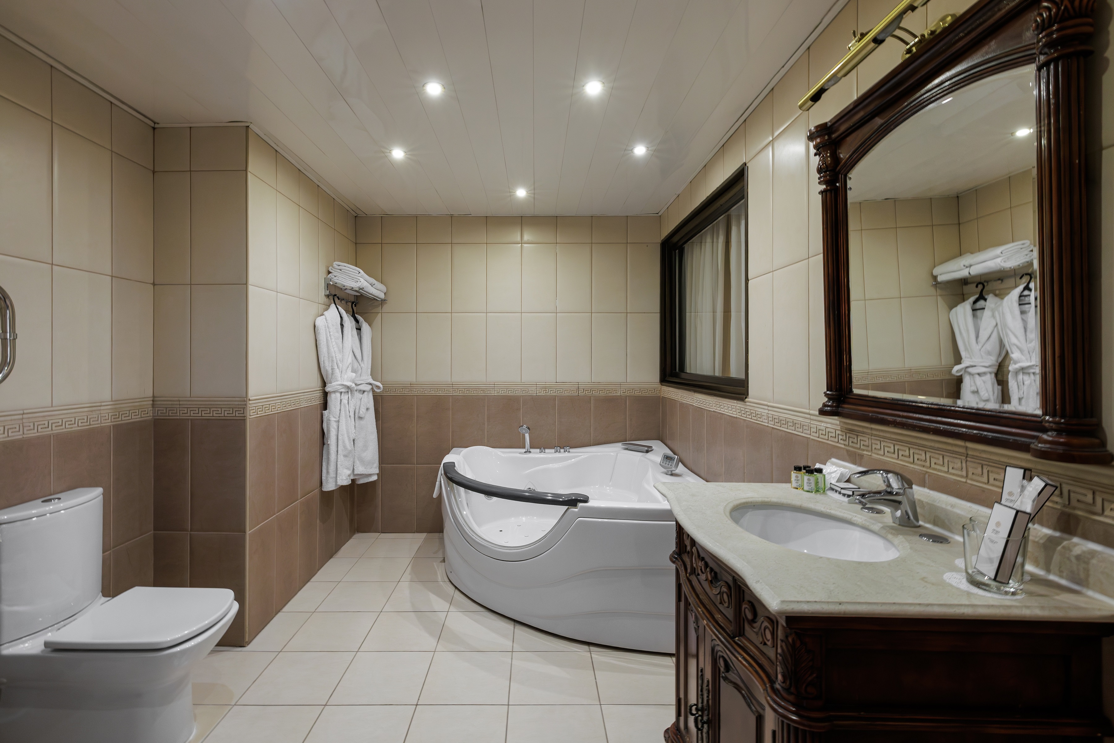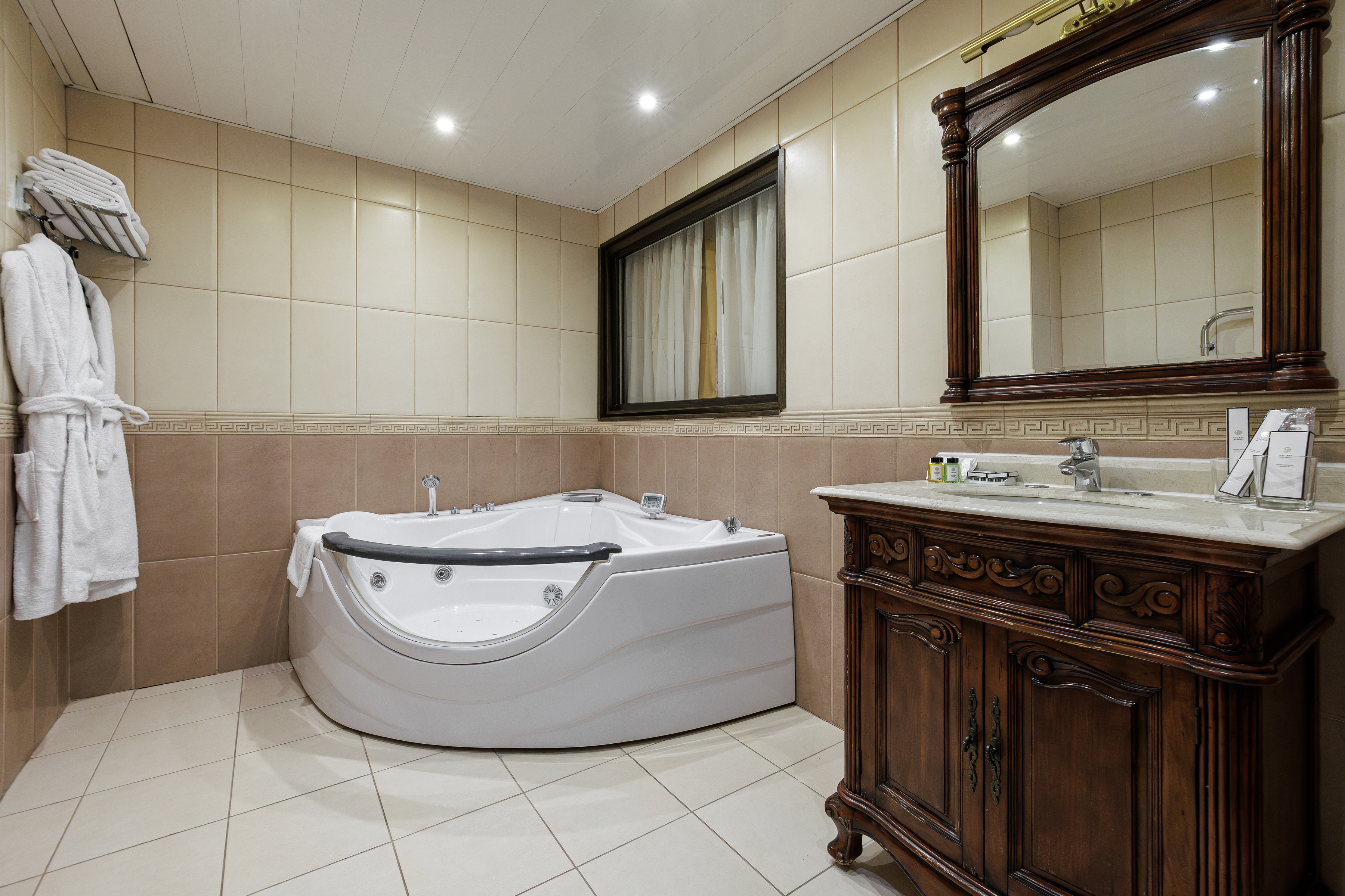 биде: ; с джакузи: ; тапочки: ; туалетные принадлежности: ; фен: ; халат: ;